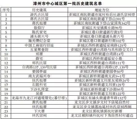 2014年,省住建廳、省文化廳聯(lián)合委托廈門大學、華僑大學等5所高校開展全省歷史建筑、特色建筑、歷史風貌區(qū)普查工作,F(xiàn)漳州市中心城區(qū)游氏古民居、蔣氏古民居 、蔣氏祖厝等24處建筑擬第一批公布列為歷史建筑 。